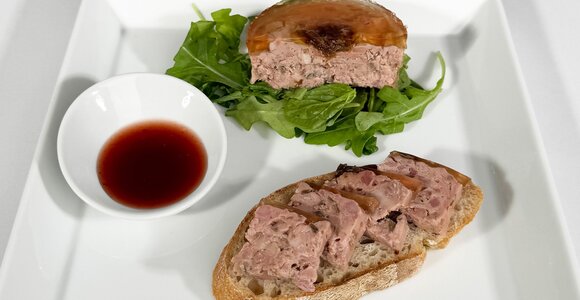 Leberpaté mit Trüffel 100 g € 4,80 Rotwein-Schalotten-Terrine 100 g € 4,80 Leberterrine provencal, mit grünem Pfeffer 100 g € 4,90 dazu:
